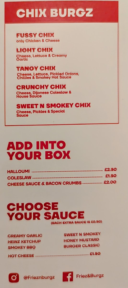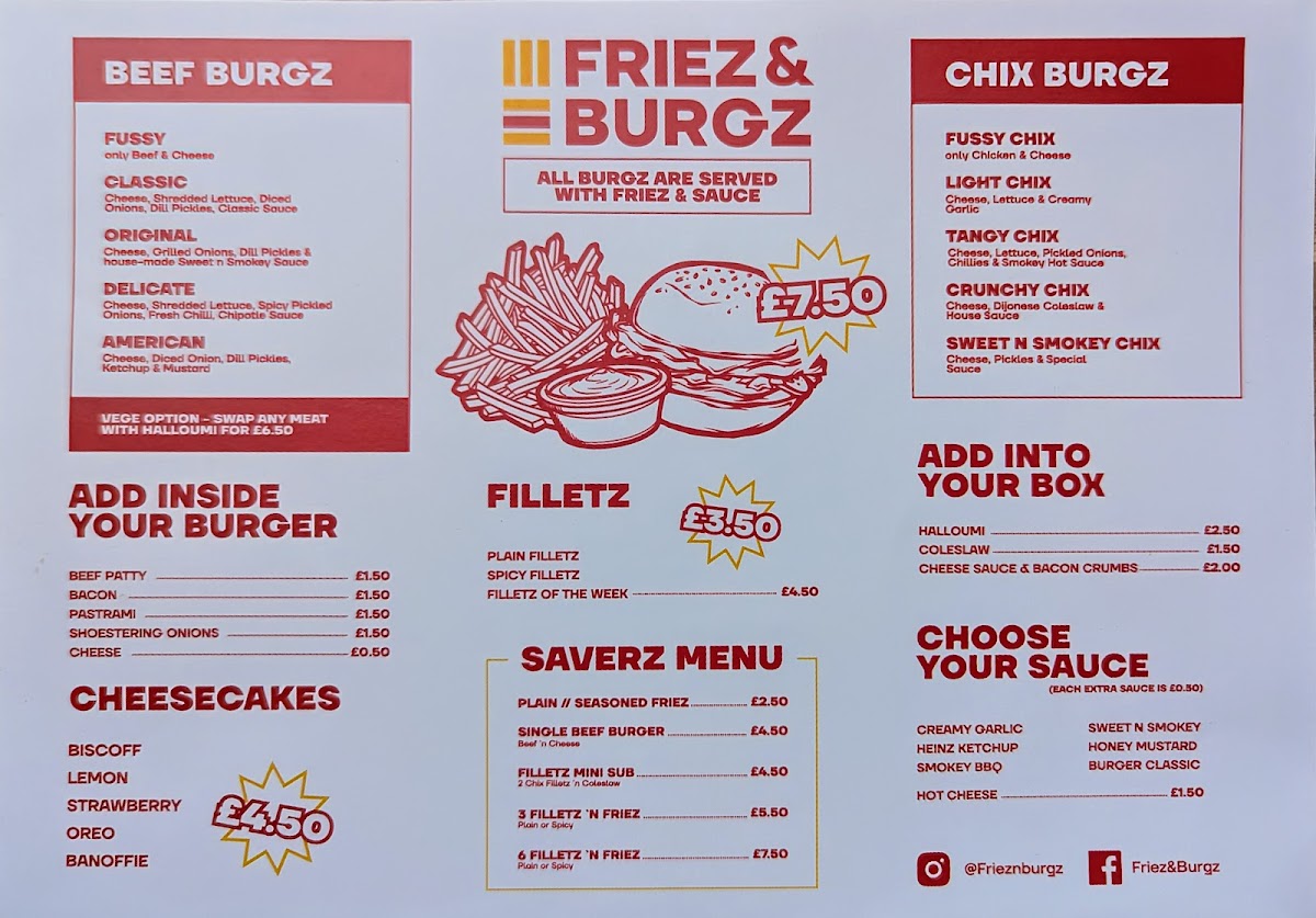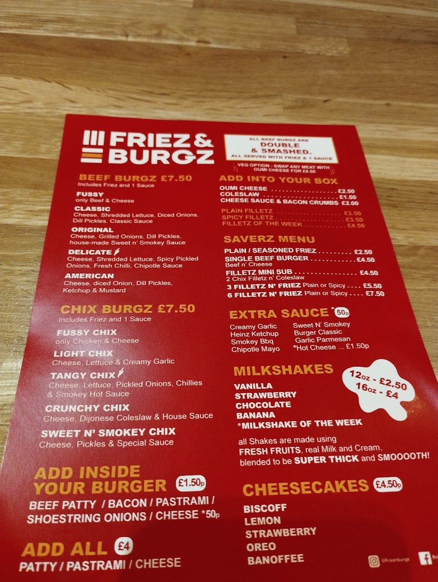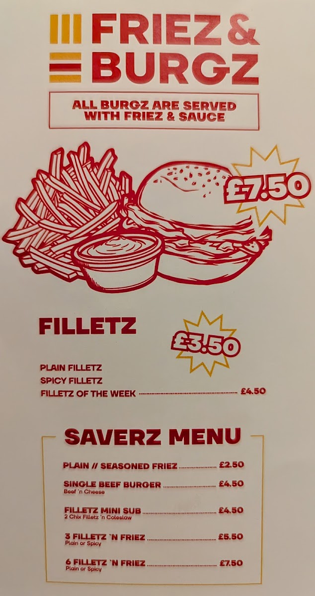 The Friez & Burgz Menu features a mix of gourmet burgers, loaded fries, and a variety of sides, catering to a wide range of tastes. The burgers are the star of the show, with options that include classic beef, chicken, and vegetarian patties, all of which are cooked to perfection. The buns are soft, and the fillings are generous, packed with fresh ingredients that make each bite satisfying. The loaded fries are equally impressive, topped with a variety of mouthwatering toppings like melted cheese, crispy bacon, and tangy sauces.